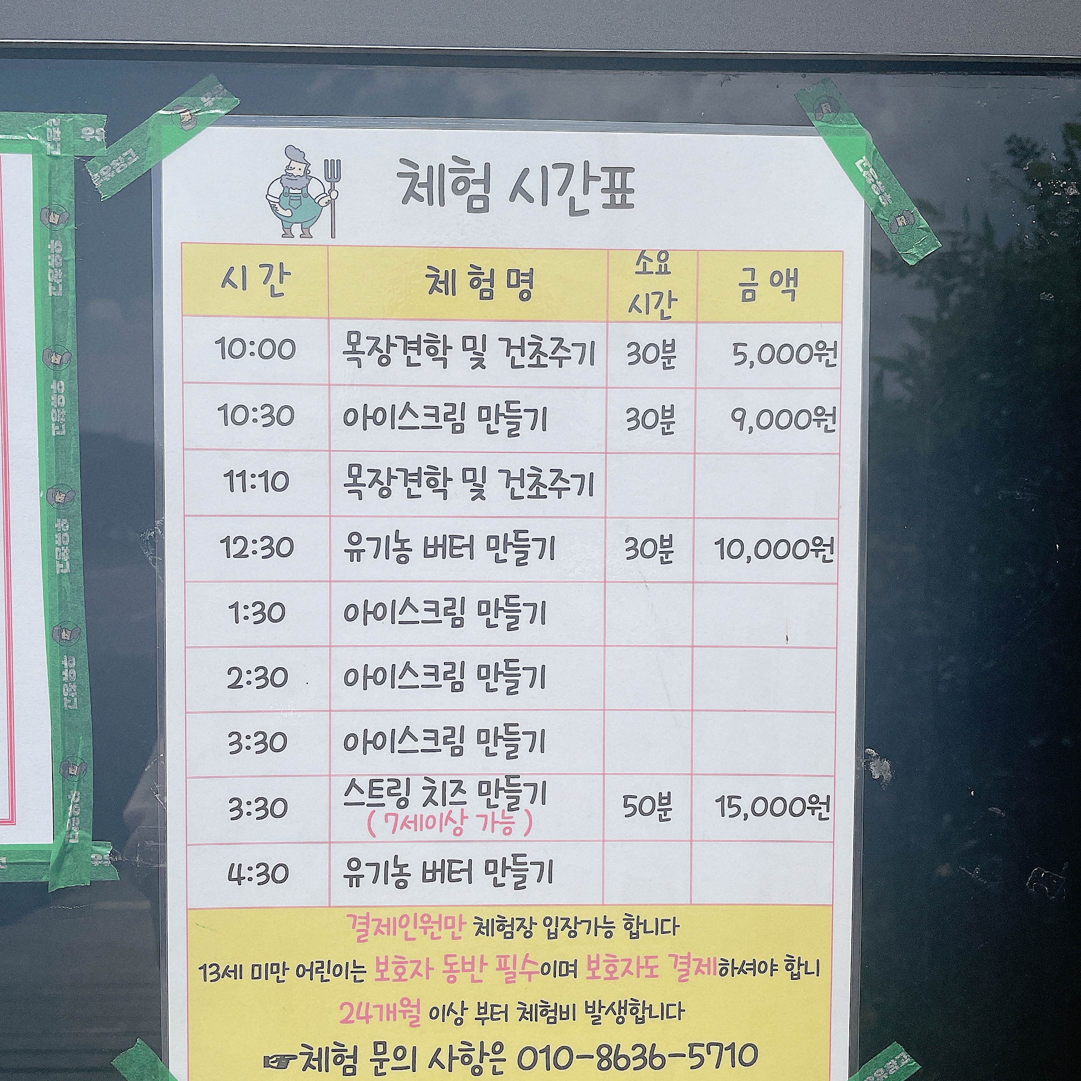 목장견학 및 건초주기 소요시간 30분 금액 1명당 5,000원