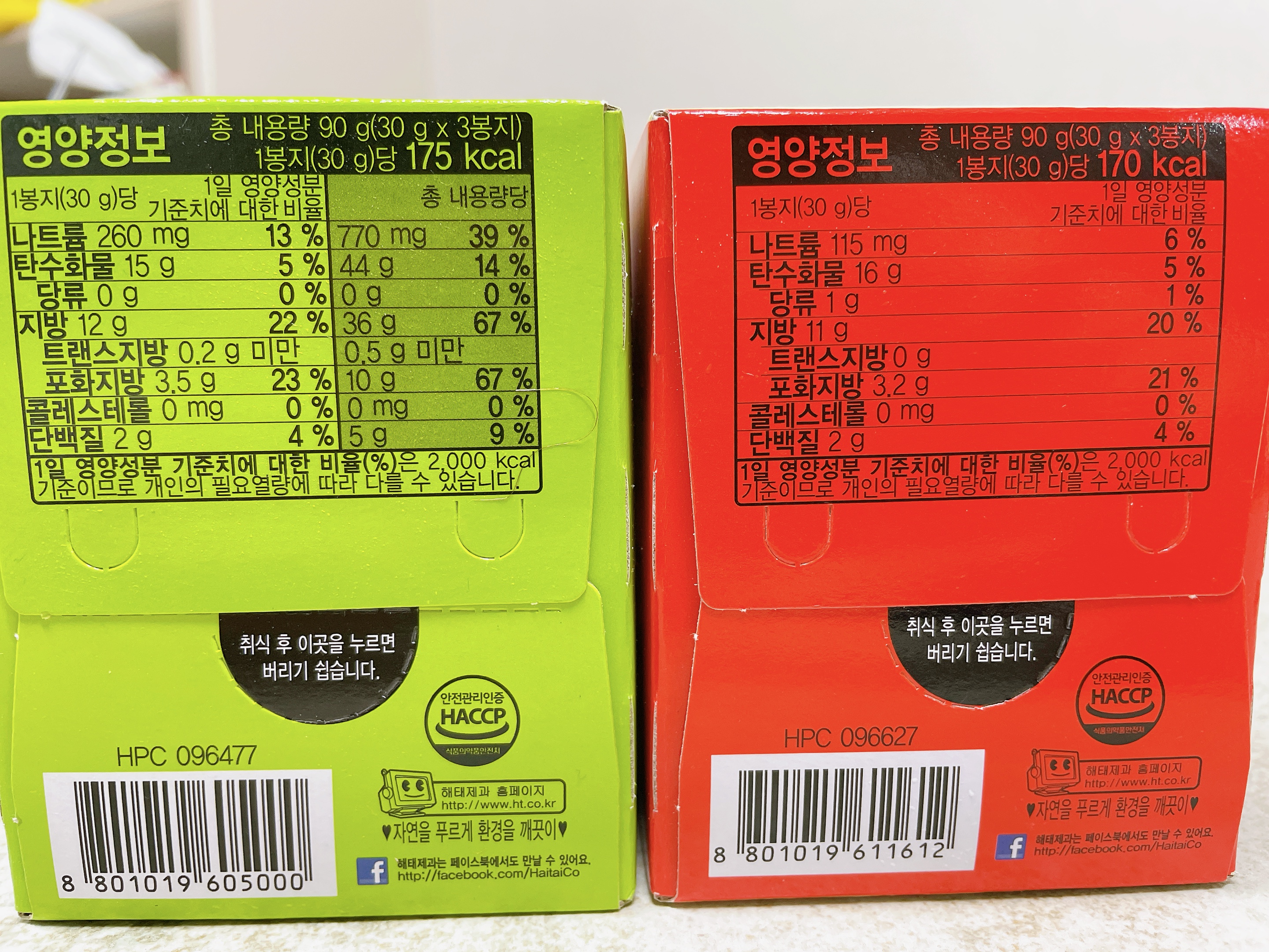 케첩맛이 더 칼로리가 높을 줄 알았는데,