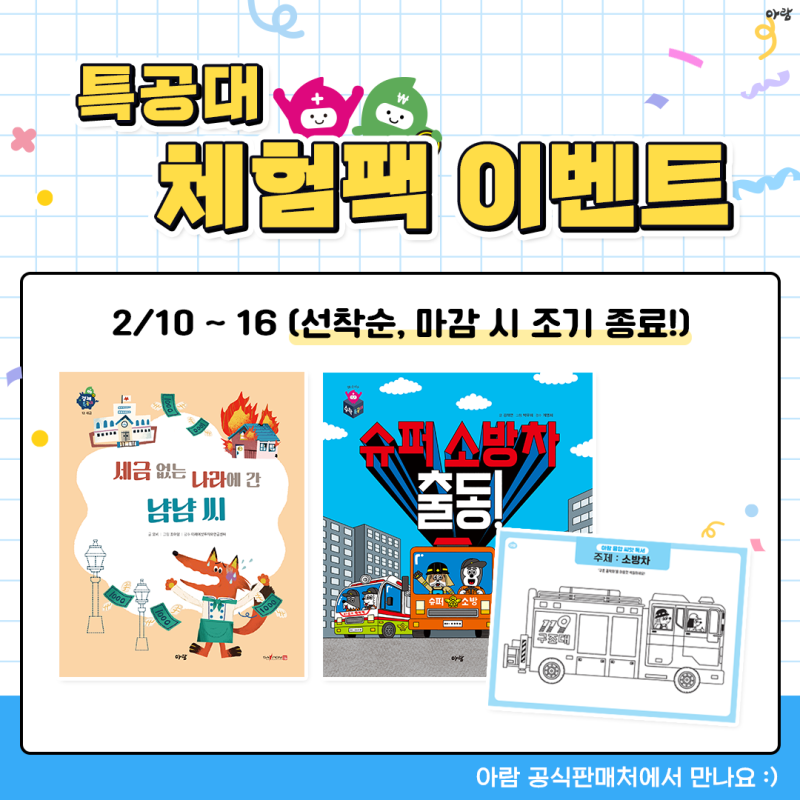 [아이책_이벤트소식] 아람북스 경제&수학특공대 체험팩 이벤트 START‼️책이야기 2023. 2. 10. 16:06