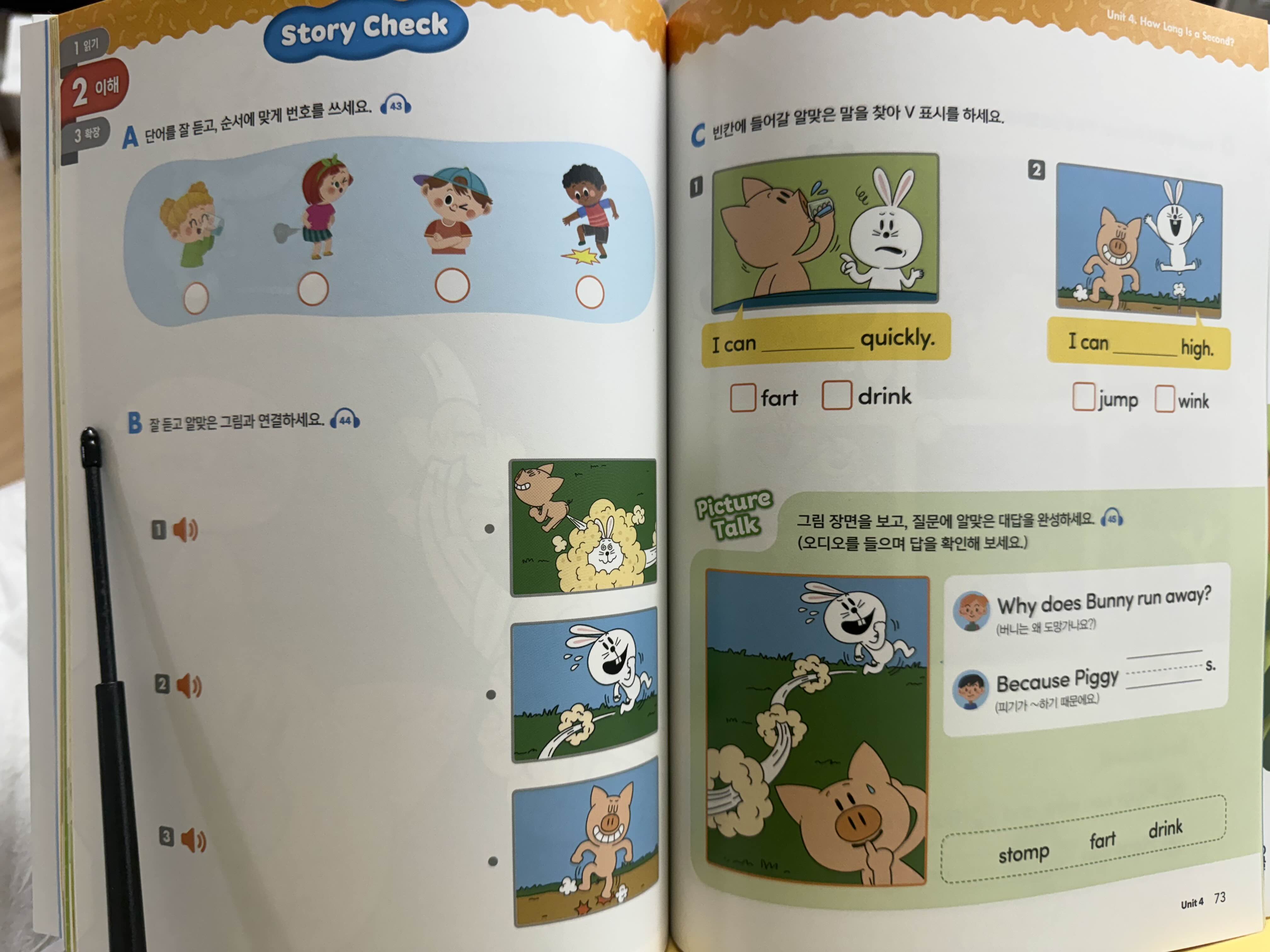 아이는 아직 쓰는 걸 어려워하고 꺼려하는 편인데요. 기적의 영어리딩은 쓰기는 많지 않아요. 듣고 철자 일부를 쓰거나, 선긋기, 체크하기, Unit당 쓰기가 단어 10개도 안되는 것 같아요! 아이가 너무 좋아했어요😂