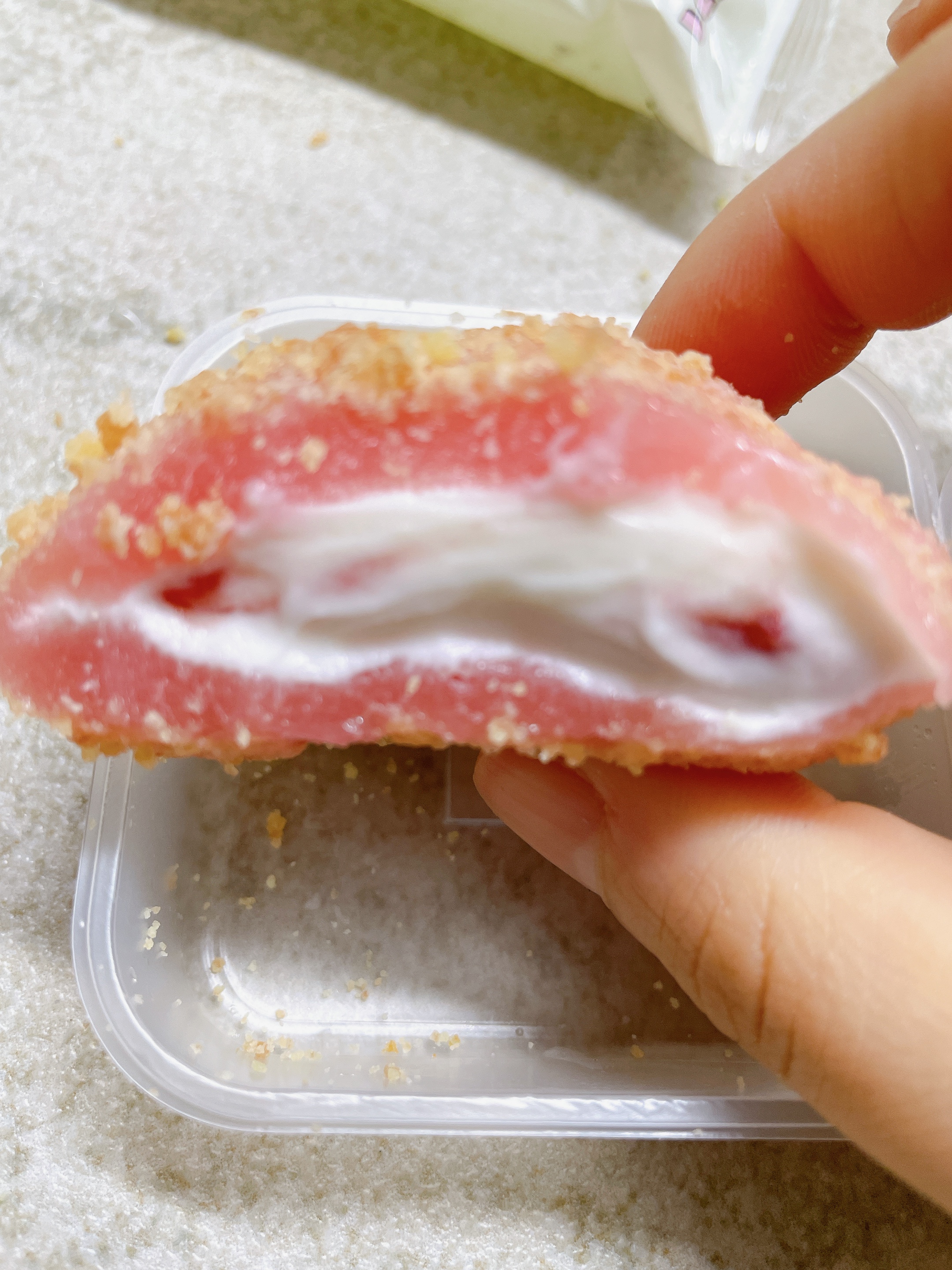 SPC삼립과 카페 노티드(Knotted)가 협업해 출시한 노티드 크림떡은 냉동된 상태로 실온에서 자연해동 후 섭취하는 디저트다.