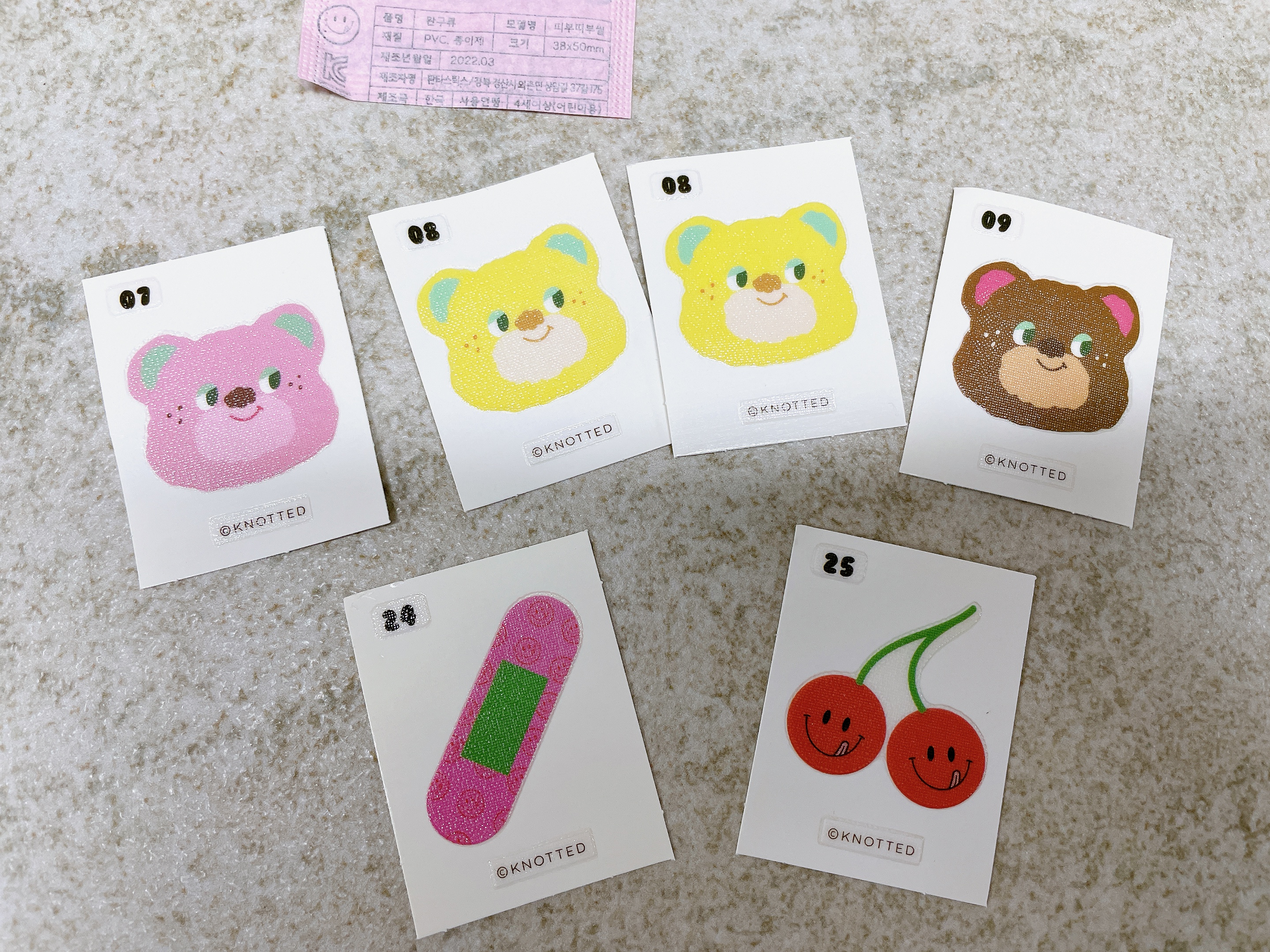 각각 개별 포장 되어있어 보관및 휴대가 용이하며, 더불어 띠부실 3개씩 들어있어 재미를 더한다.