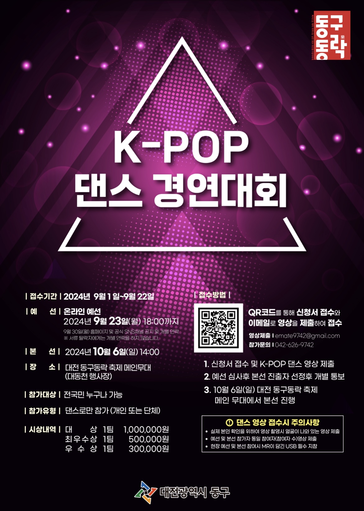 - 3. 10월 5일 (토) 대전 동구동락 축제 메인 무대에서 본선 진행