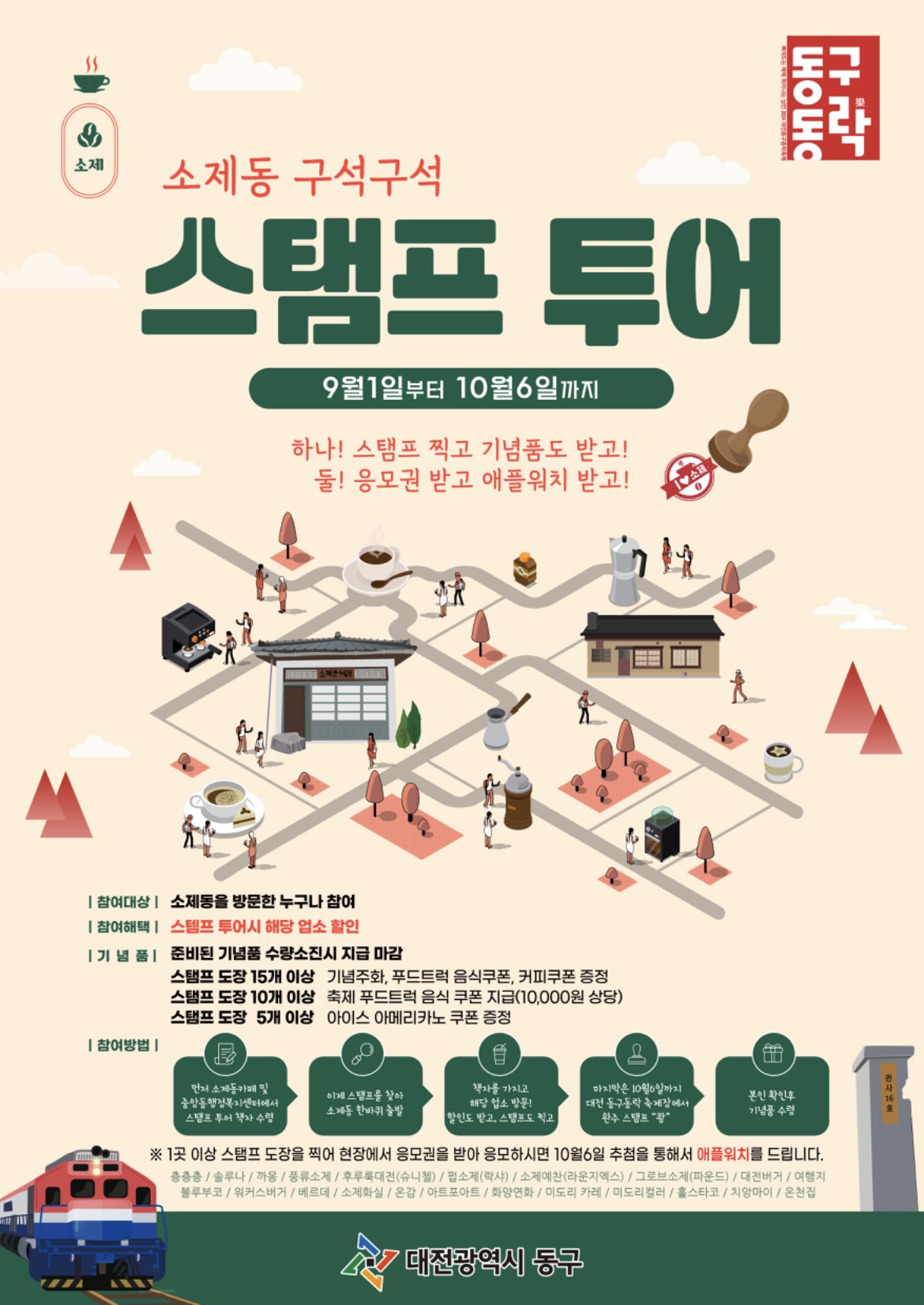 - 1. 소제동 카페 및 중앙동행정복지센터에서 스탬프 추어 책자 수령